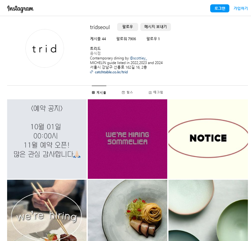 (2) 트리드 레스토랑 인스타그램