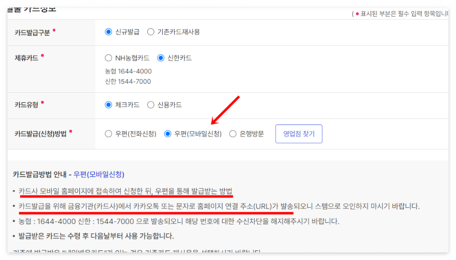 고용 24 홈페이지 에서는 발급 신청만 하는 것이며, 실제 실물 카드 신청의 경우 각 카드사 홈페이지를 통해 신청 가능 하답니다.