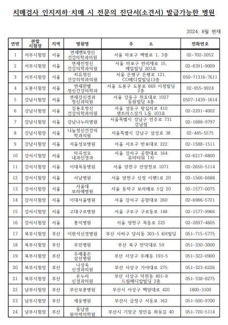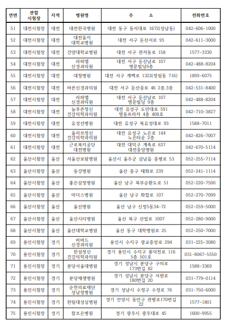 - 출처 : 한국도로교통공단 안전운전 통합민원 사이트 _ 치매검사 병원